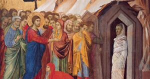 When the large crowd of the Jews learned that Jesus was there, they came, not only on account of him but also to see Lazarus, whom he had raised from